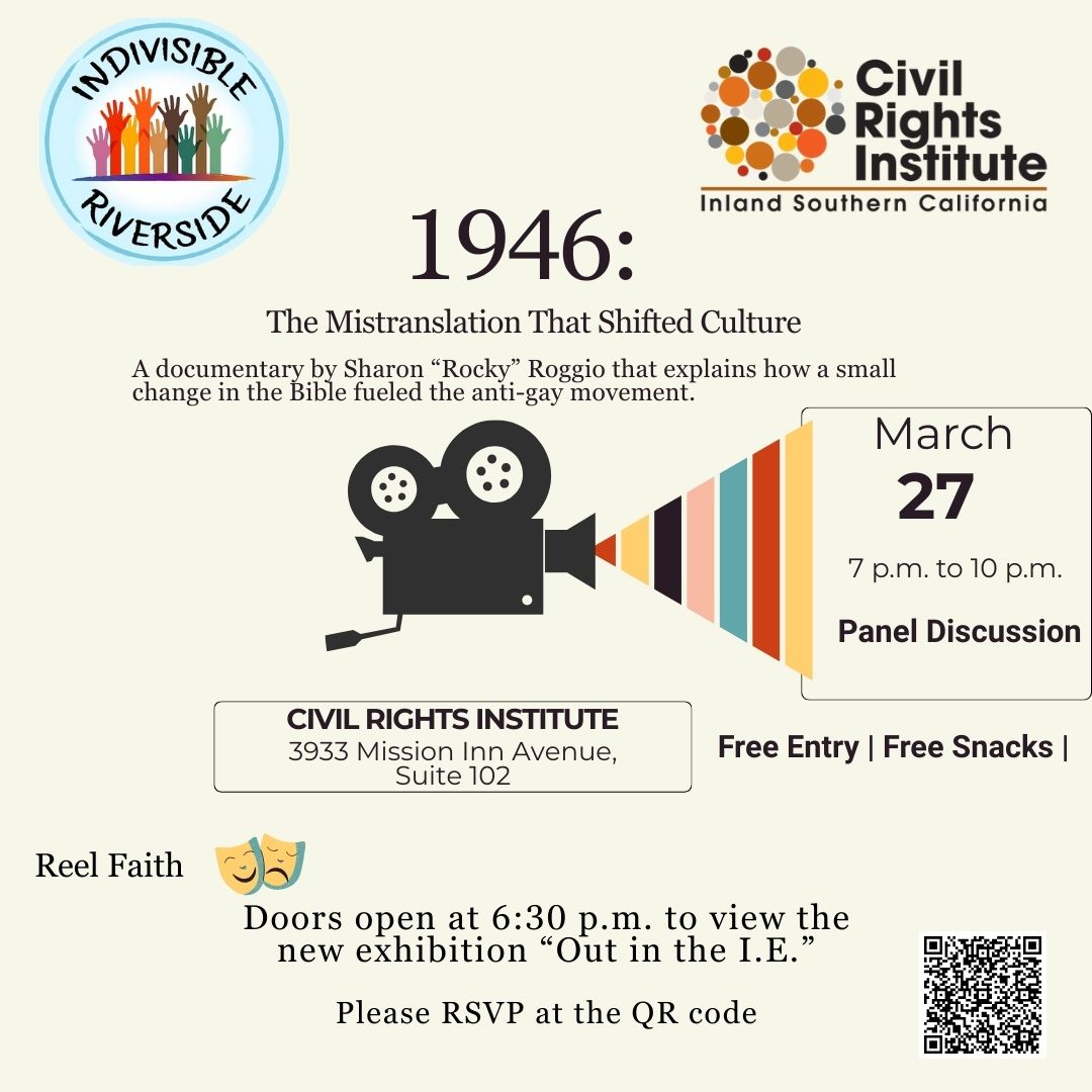 Small changes can create big impacts. Our next program examines how a single word helped shape decades of belief. Join us Friday, March 27 from 6:30 PM to 9:30 PM for a screening of 1946: The Mistranslation that Shifted Culture followed by a panel discussion. This film, first released in 2022, explores how a specific mistranslation of the Bible in the 1940s inadvertently fueled the anti-LGBTQ+ movement in Christianity. Be a part of the bigger discussion by signing up here.