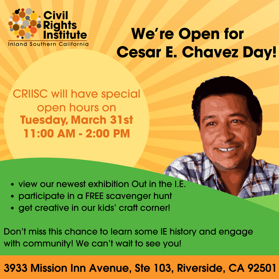 Civil Rights Institute of Inland Southern California 3933 Mission Inn Ave., Suite 103, Riverside, CA, United StatesOut in the IE is a thematic survey exhibition covering 10 central themes: Art, AIDS, Community Care, Political Representation, Student Movements, Drag and Nightlife, Safety, Faith, Pride and Representation, and […]