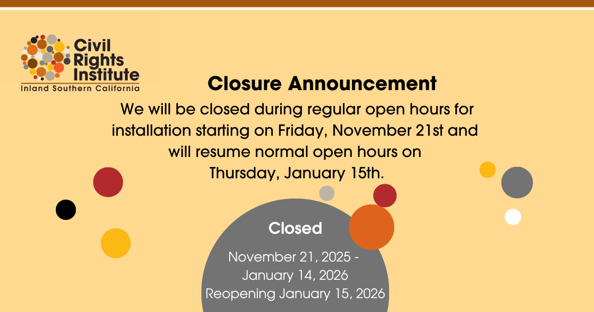 The Civil Rights Institute of Inland Southern California inspires people of all ages through lifting up the historic and ongoing civil rights stories of the region, fostering community advocacy, and building champions of tomorrow.
